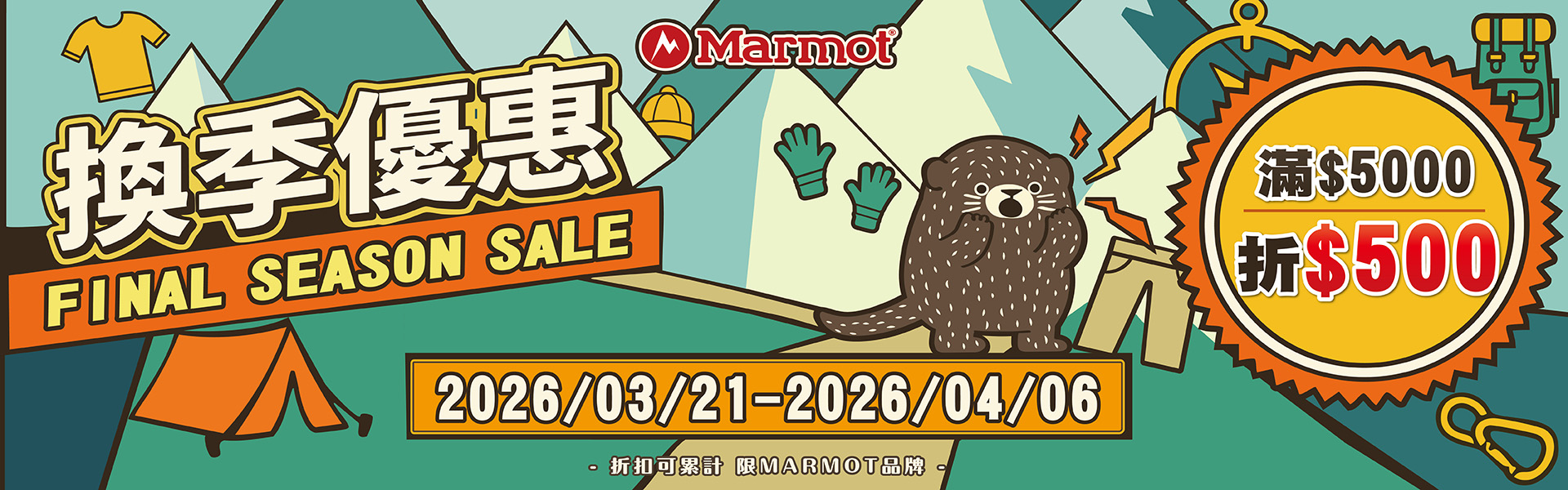 凡購買Marmot品牌商品滿5000現折500,可累贈
