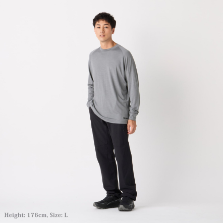 女款 BOLD 超細美麗諾羊毛長袖上衣 220g| 灰藍/冷灰