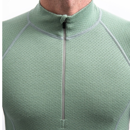 雙層導汗結構:聚酯內層能快速將汗水導出,美麗諾羊毛外層則具天然抗菌與防臭效果。