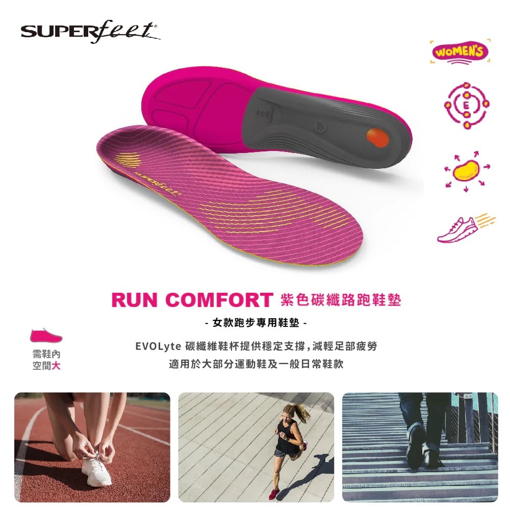 Women's RUN Insoles 是專門為了女性來設計的跑步鞋墊,可以幫助跑者提高效率時減少足部疲勞。Superfeet的鞋墊可以讓你的鞋子更加個人化,更適合你的足型。EVOLyte 碳纖維鞋杯與 AeroSpring 雙層舒適發泡材質不僅提升了舒適性與順暢度,更可以提高足部的能量傳遞效率。