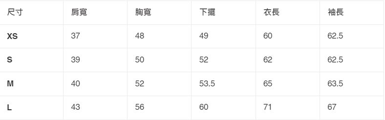 ※ 尺寸表為商品平放測量,以公分(cm)為單位。