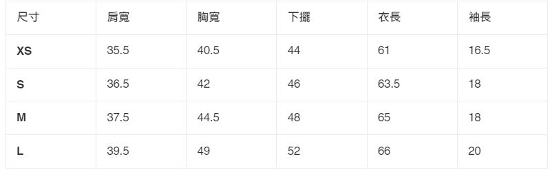 ※ 尺寸表為商品平放測量,以公分(cm)為單位。
