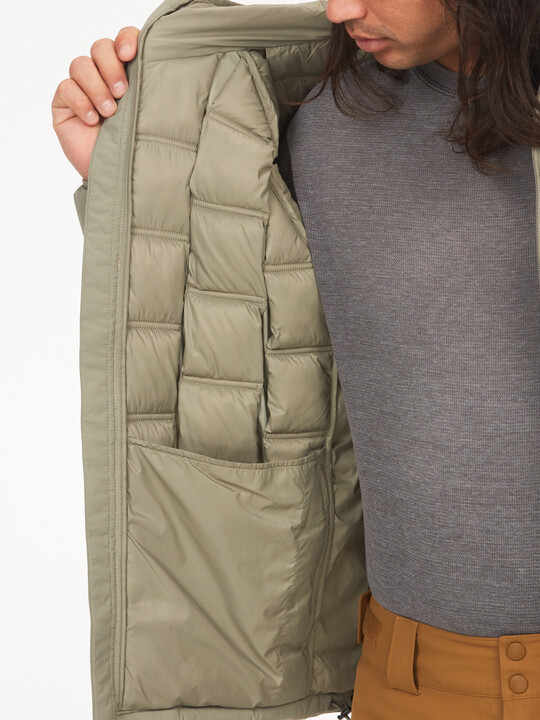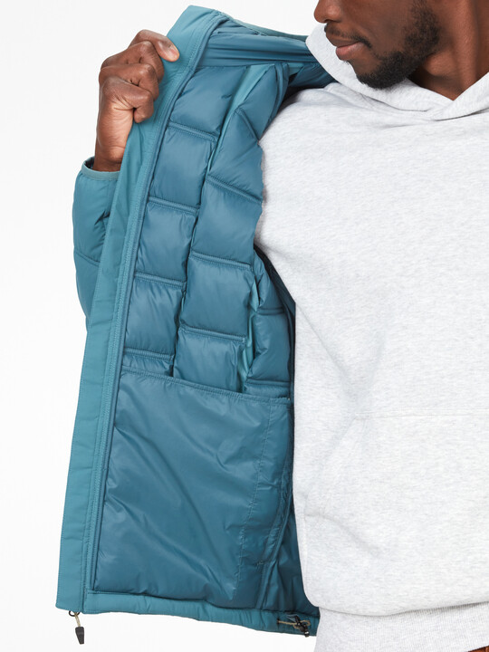 Featherless 是超輕的化學纖維材料,有著羽絨的高保暖性與可壓縮性,由 75%的可回收材料製成,是一種高保暖性的填充物,其保暖效能相當於 700FP 羽絨的保暖度。Featherless 是由 Marmot 和 3M 合作開發的材質,經過精心設計下,具有合成纖維抗水性的優點,無論是視覺、觸感、保暖性都比其他化纖材質更加舒適,更能達到天然羽絨的同等功能。它不僅是天然羽絨之外的選項,表現上更可以完全取代羽絨。傳統的羽絨在潮濕時會失去保暖效果,而在同樣情形下,Featherless 依然能夠保暖 - 因此,您永遠不需要擔心您的旅程。