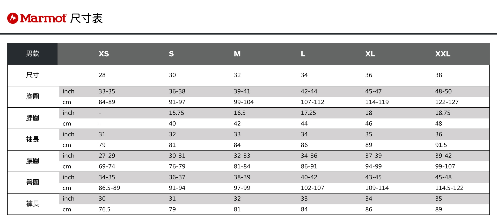 ※ 尺寸表為商品平放測量,以公分(cm)為單位。