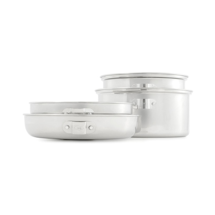 包含:鍋子x2 (1.4L+2.3L)、兩用煎鍋/鍋蓋x2、砧板x2、鍋夾x1、網袋x1