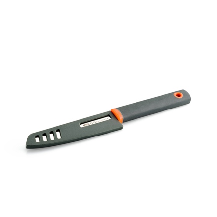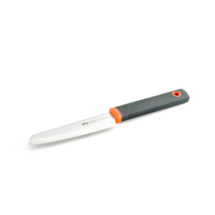 精緻的Santoku 4英寸削皮刀適合在戶外露營時料理美食。是完美的戶外大廚必備工具。鋒利的的不銹鋼刀片可俐落的使用,可用於廚房準備工作或露營場地。