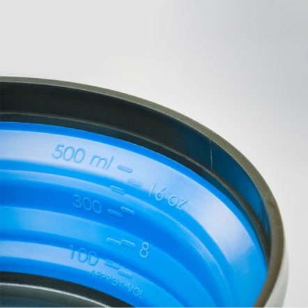 折疊杯碗可以輕鬆自由的收納在隨身背包中,可收納至只有2.5cm的高度,除了內置刻度設計,還有堅固的尼龍底部材質,可防止晃動而使內容物溢出。