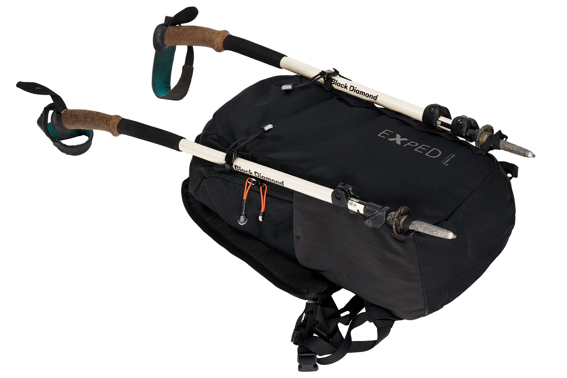 背包前側有環繩設計,可放置冰斧/登山杖,解放你的雙手