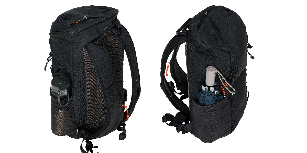 背包兩側邊皆有可伸縮口袋,可放置水瓶、雨傘...等