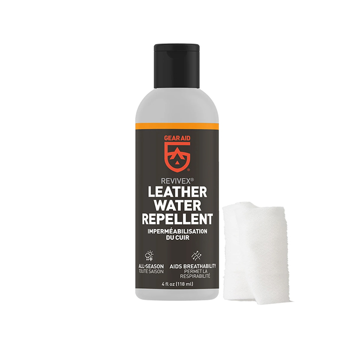 Revivex Leather Water Repellent 皮革防水劑是一款將皮革保養以及防水功能雙效合一的產品;一般我們的皮鞋或皮製登山靴在歷經日曬、雨淋長時間使用後都會面臨乾裂失去柔軟彈性的問題,只要定期使用雙效合一的Leather Water Repellent 皮革防水劑就能避免這樣的情形發生,防水乳經過刷塗之後會深層進入皮革,不但能恢復皮革光彩並且提升防水的性能;這款皮革防水劑也特別適用GORE-TEX®皮製登山靴的保養。