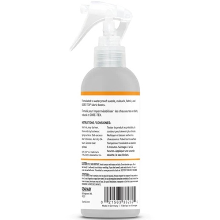 Suede and Fabric Water Repellent麂皮防潑水噴劑,是一款專為麂皮、磨砂革以及防水透氣鞋所設計的產品;這種防水噴劑可以提升鞋子的抗污性並在下雨天保持雙腳乾燥,而便於操作的噴霧方式特別適用這類不光滑的表面,尤其是麂皮鞋類、登山靴以及運動鞋皆能使用。