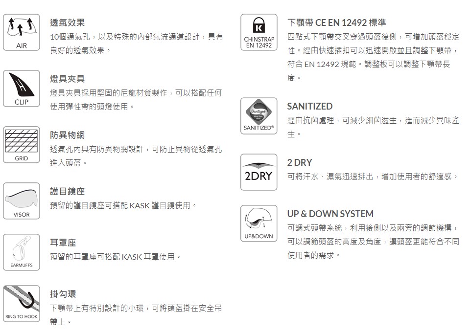 義大利品牌 KASK 是一間專注於設計製造高品質的運動頭盔及安全頭盔的公司。無論是在自行車、下坡滑雪、越野滑雪、登山、攀岩、救難以及工作頭盔的各種領域,皆處於領先的地位。