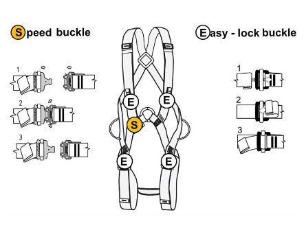 安全吊帶、攀登繩、連接器、固定點架器材、頭盔、勢能吸收器等等
