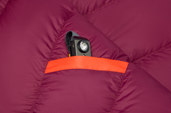 內部收納口袋方便你放置頭燈、隱形眼鏡等貴重小物。隨附的儲存袋與壓縮袋讓這款睡袋從第一天起就可以快速打包,隨時出發。