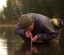 3.用拇指與食指捏住吸嘴,並擠壓裝水容器,讓水經過濾心流出,待水質清澈透明無活性碳顆粒即可使用。