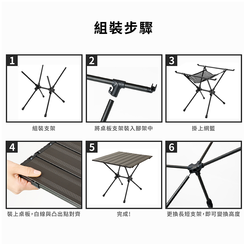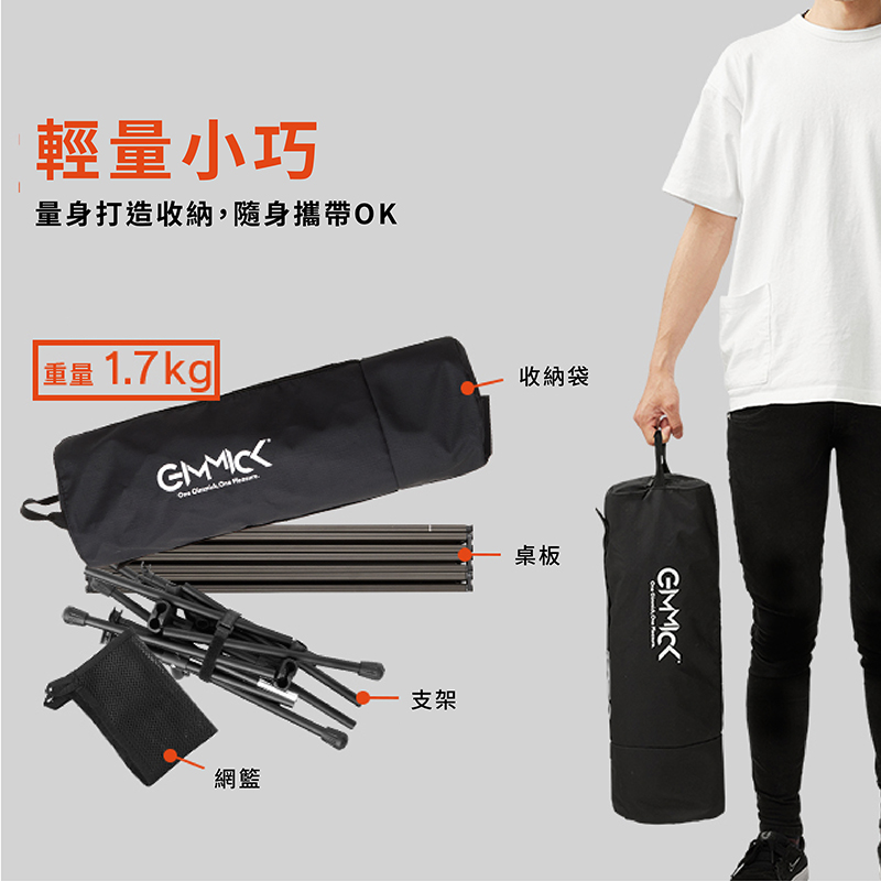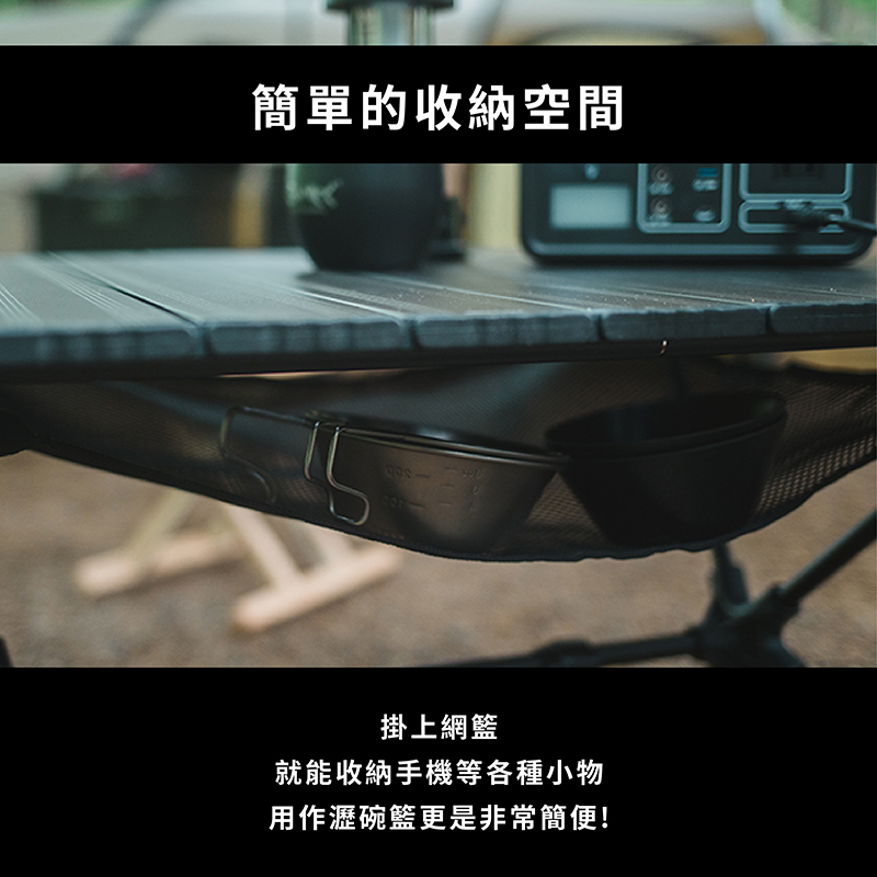 材質:桌-鋁,支架-A7075鋁合金,網袋-聚酯纖維