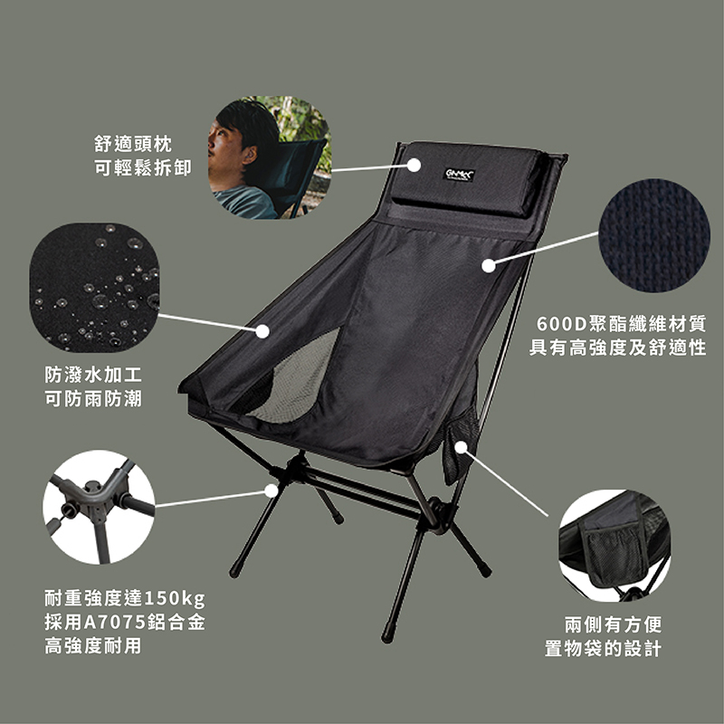 「附專屬枕」折疊式輕量戰術椅