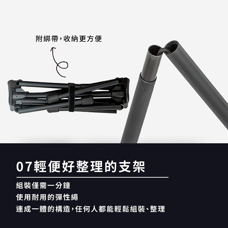 材質:表布-600D防潑水聚酯纖維,支架-A7075鋁合金