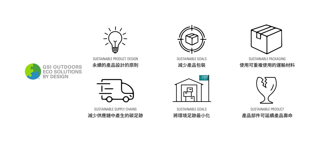 2001年,GSI以創新的HAE(陽極氧化處理)鍋具一舉奪下戶外權威雜誌BACKPACKER編輯大獎。明亮清爽的外觀與使用的樂趣,更是GSI設計中不可或缺的要素,除了講求功能、輕便、耐用,GSI秉持著永續的產品設計的原則,致力於減少產品包裝、將碳足跡最小化,創造能永續使用、同時令人驚豔的產品。