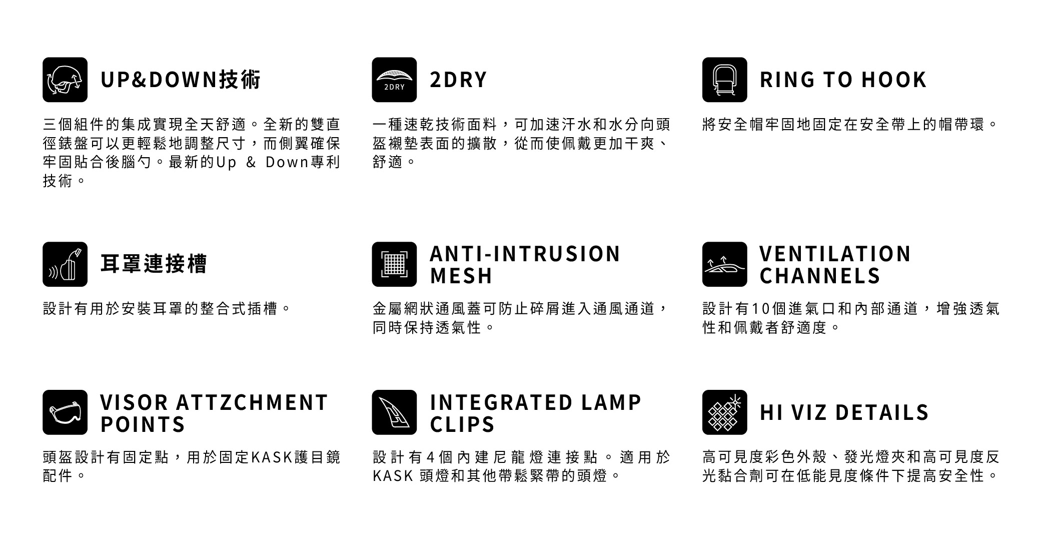 KASK 所有的產品,皆在義大利境內製造,不但具有無與倫比的舒適性之外,還必須通過最嚴格的安全品質測試ComfortSafetyDesign(CSD)。KASK 絕不在品質及安全性上妥協,每樣 KASK 的產品都能確保您的安全,並值得您信賴。