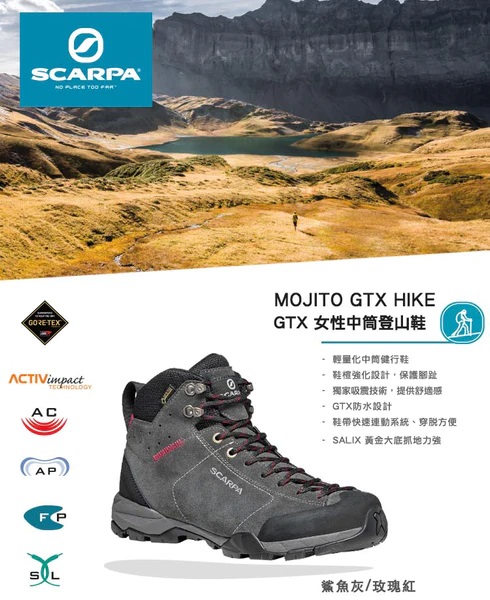 MOJITO HIKE女款中筒GTX登山鞋-鯊魚灰/玫瑰紅