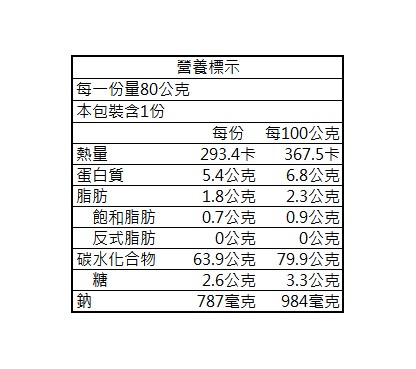 • 營養標示: