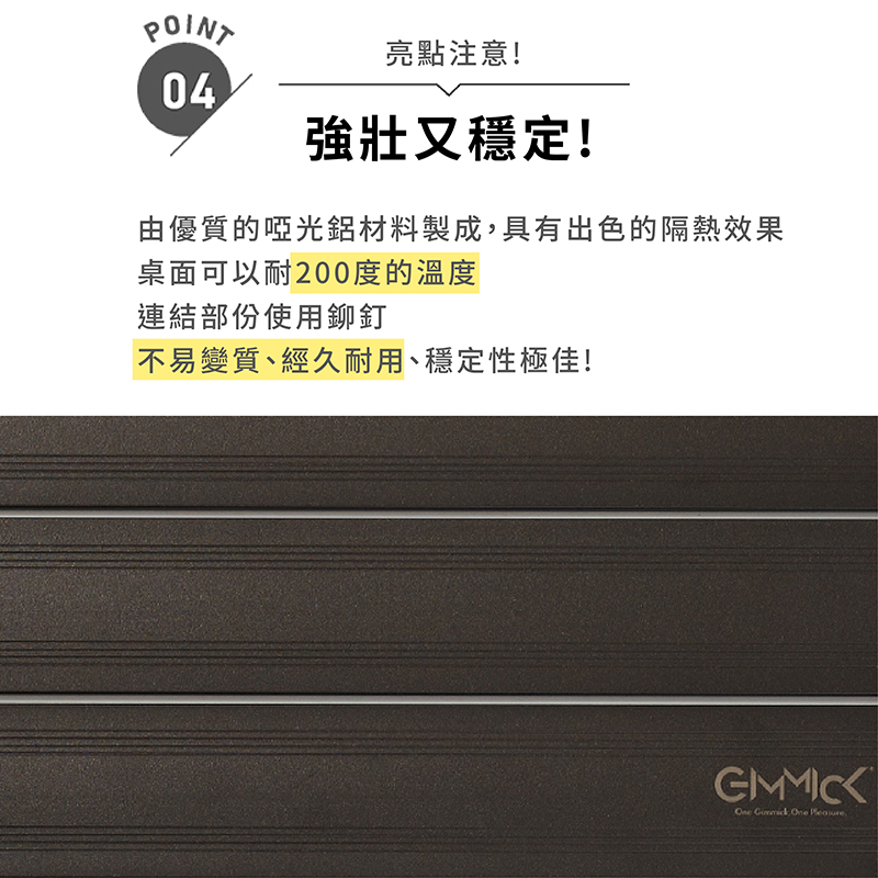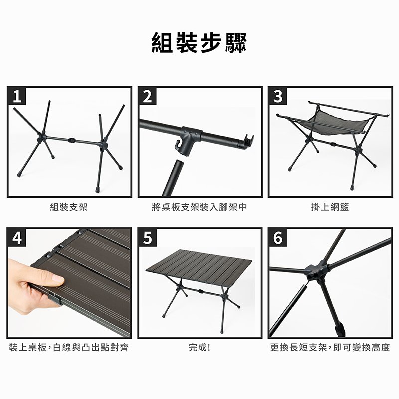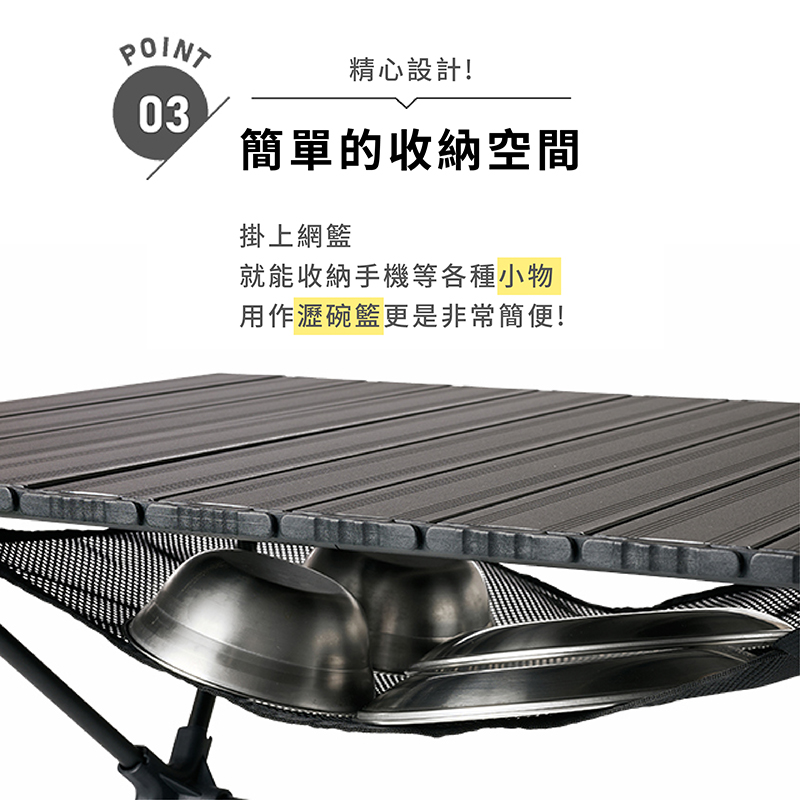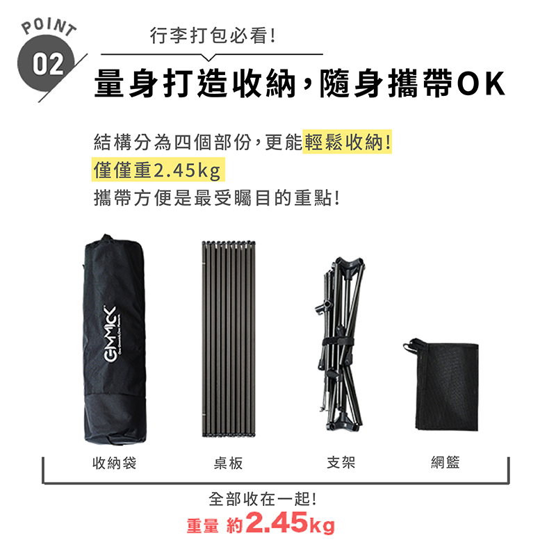 材質:桌-鋁,支架-A7075鋁合金,網袋-聚酯纖維