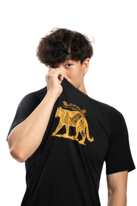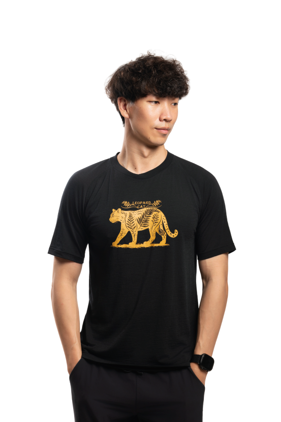 男款 美麗諾羊毛短袖上衣-島嶼生活/山蕨石虎(120g)