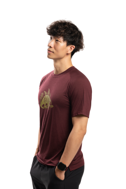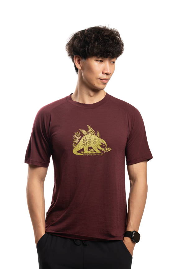 男款 美麗諾羊毛短袖上衣-島嶼生活/毛蕨穿山甲(120g)