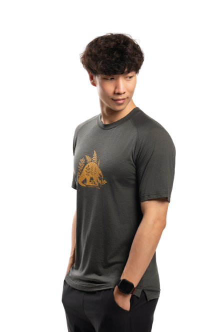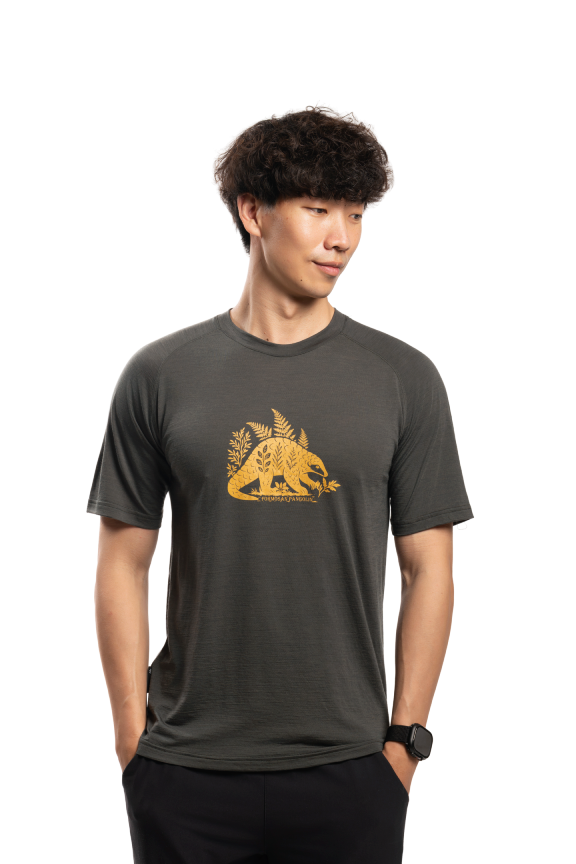 男款 美麗諾羊毛短袖上衣-島嶼生活/毛蕨穿山甲(120g)