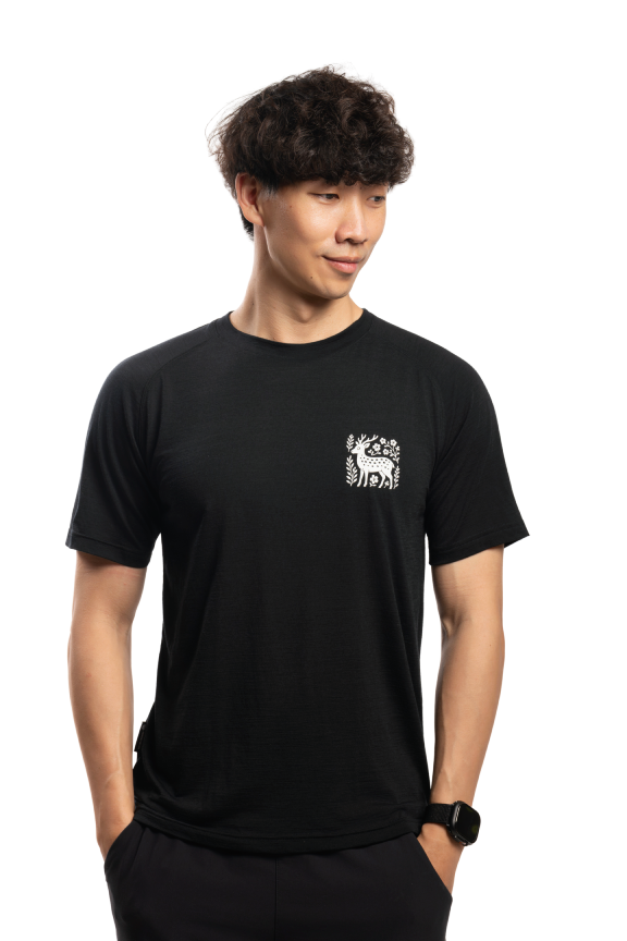 男款 美麗諾羊毛短袖上衣-島嶼生活/梅花鹿(120g)