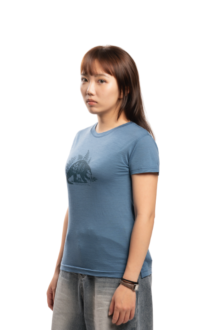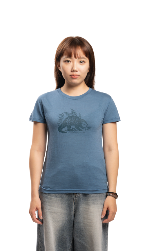 女款 美麗諾羊毛短袖上衣-島嶼生活/毛蕨穿山甲(120g)