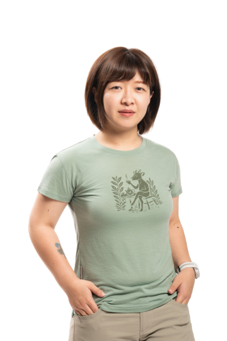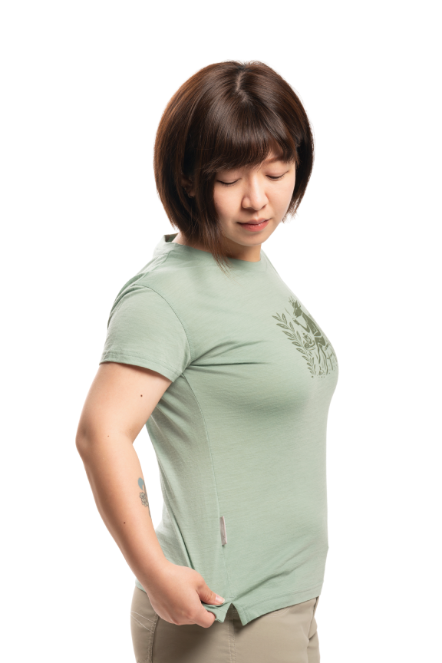 女款 美麗諾羊毛短袖上衣-島嶼生活/悠然山羌(120g)