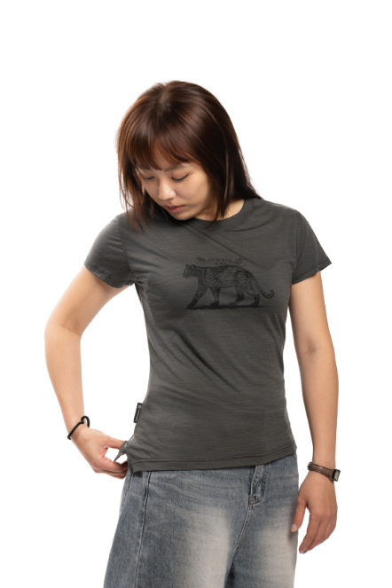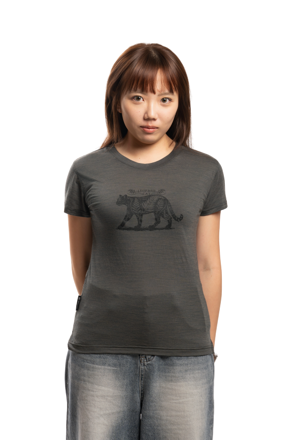 女款 美麗諾羊毛短袖上衣-島嶼生活/山蕨石虎(120g)