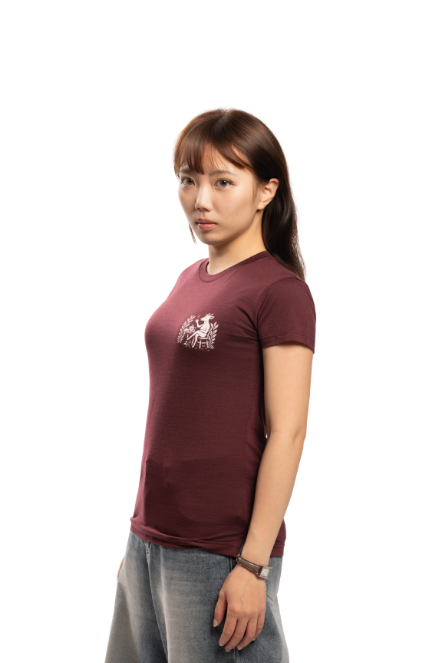 女款 美麗諾羊毛短袖上衣-島嶼生活/悠然山羌(120g)