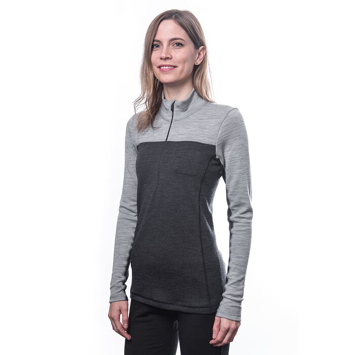 MERINO BOLD WOM TEE LS ZIP ANTHRACITE/COOL GRAY