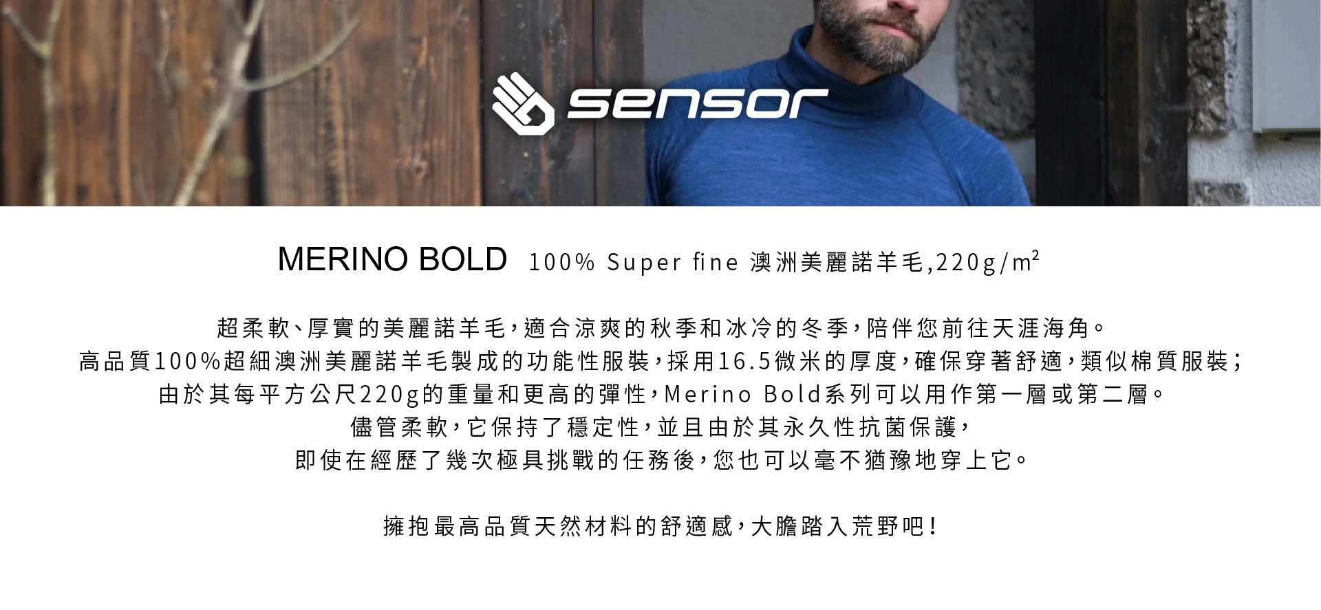 Merino Bold 高階系列:選用極細澳洲美麗諾羊毛,柔軟親膚、觸感近似純棉,提供極致舒適體驗。
