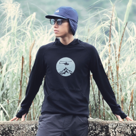 M Heli 男款連帽美麗諾羊毛長袖排汗上衣(230g/㎡)