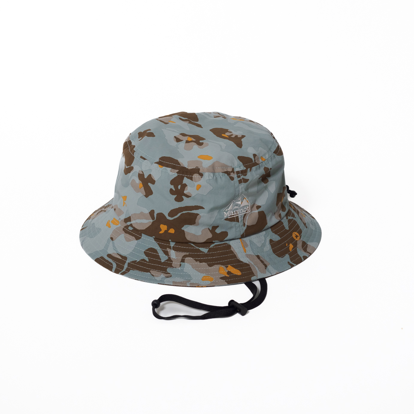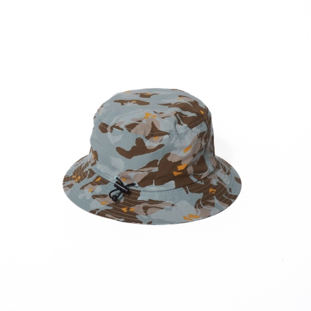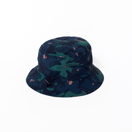 這款帶繩漁夫帽採用天然紋理的尼龍布料製成。側面標誌採用了90年代使用的品牌標誌。附有吸汗快乾的止汗帶,可使用背面的調節器調整尺寸。下巴帶繩是可拆卸的。夾克和短褲也採用相同材質。