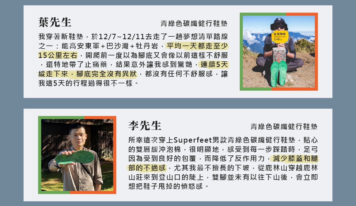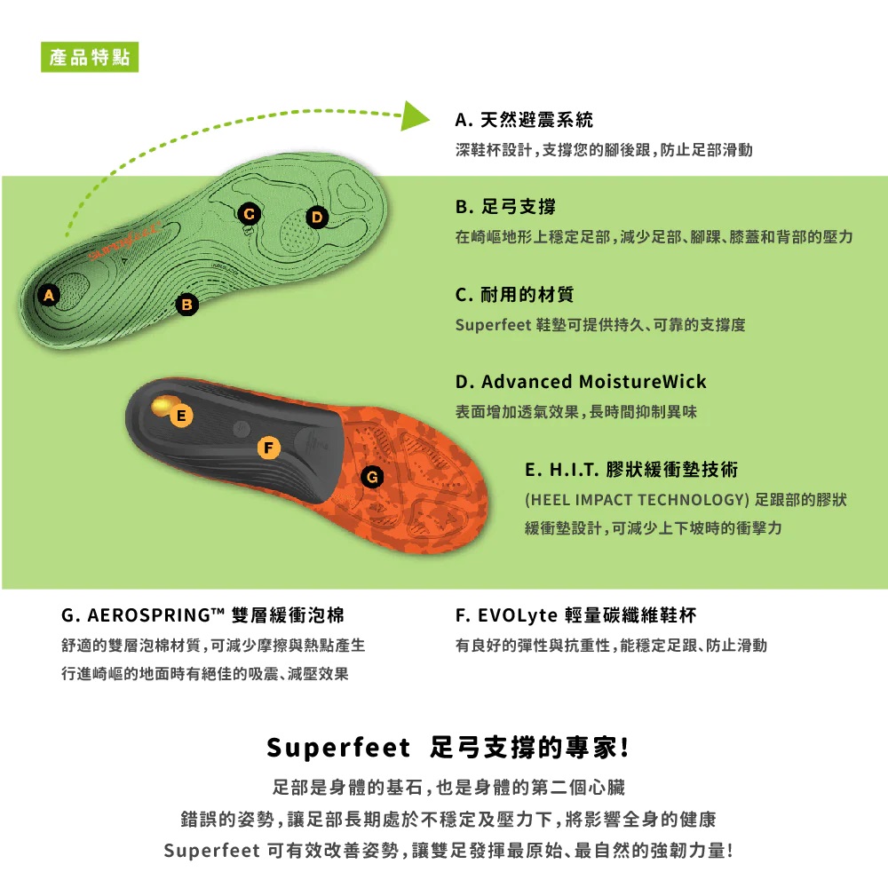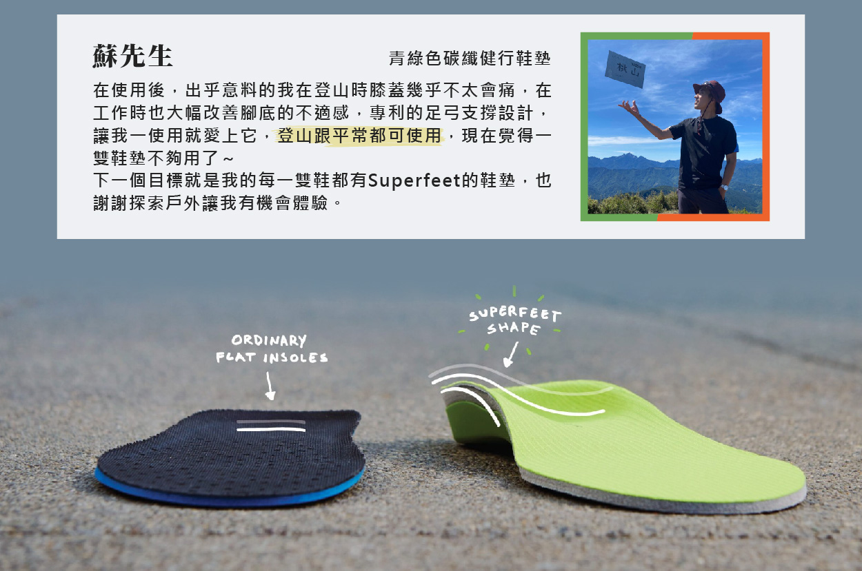 自 1977 年以來,Superfeet 藉由改變人們穿鞋的方式,完成了許多驚人的成就與目標。由於有著百年足部研究室的深厚基礎,Superfeet 以足部醫學的原理設計了優異而實惠的鞋墊,一雙輕薄多功能的鞋墊,改變的不僅是足部的不適,更能藉此調整身體的習慣與姿勢,讓雙足發揮最原始而自然的力量。