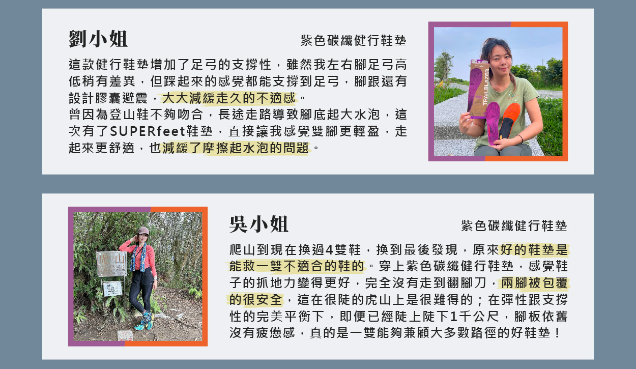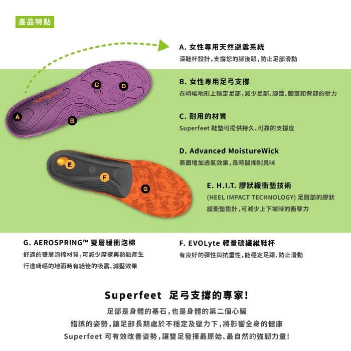 自 1977 年以來,Superfeet 藉由改變人們穿鞋的方式,完成了許多驚人的成就與目標。由於有著百年足部研究室的深厚基礎,Superfeet 以足部醫學的原理設計了優異而實惠的鞋墊,一雙輕薄多功能的鞋墊,改變的不僅是足部的不適,更能藉此調整身體的習慣與姿勢,讓雙足發揮最原始而自然的力量。