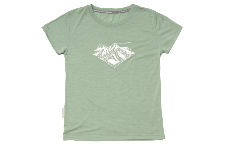 女款 美麗諾羊毛短袖上衣-島嶼生活/V熊玉山(120g)|羅勒綠