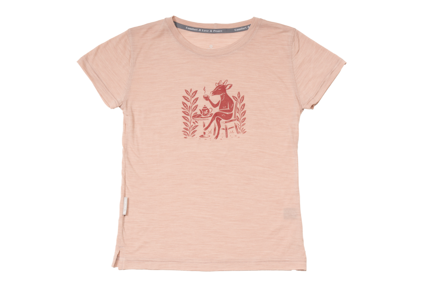 女款 美麗諾羊毛短袖上衣-島嶼生活/悠然山羌(120g)