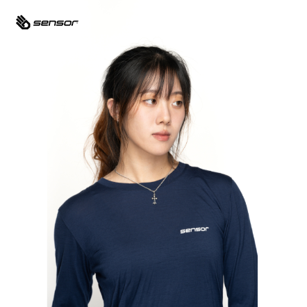 女款 Merino Active LOGO美麗諾羊毛長袖上衣 160g|深藍