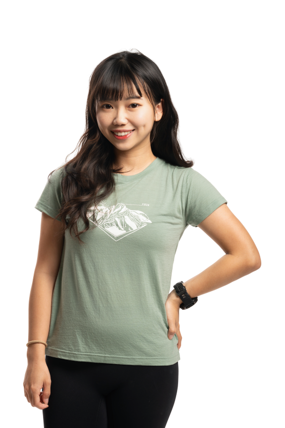 女款 美麗諾羊毛短袖上衣-島嶼生活/V熊玉山(120g)|羅勒綠