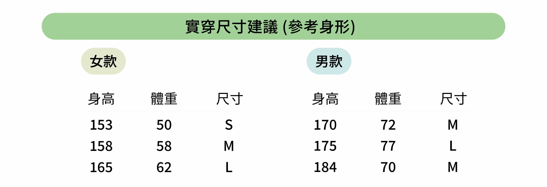 |男款尺寸表|