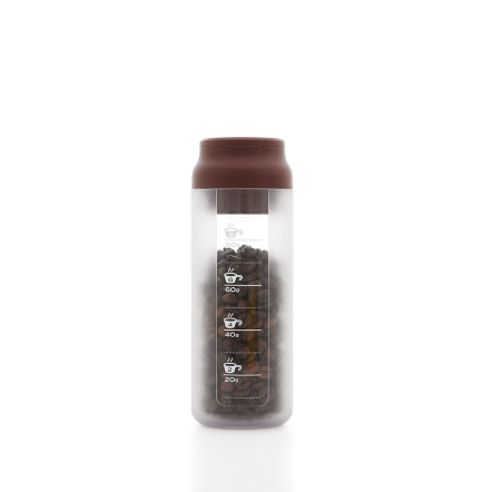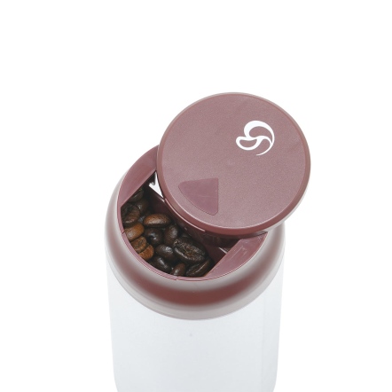 頂部滑蓋,搖動一次即可將 1/2 杯咖啡豆放入凹槽中。