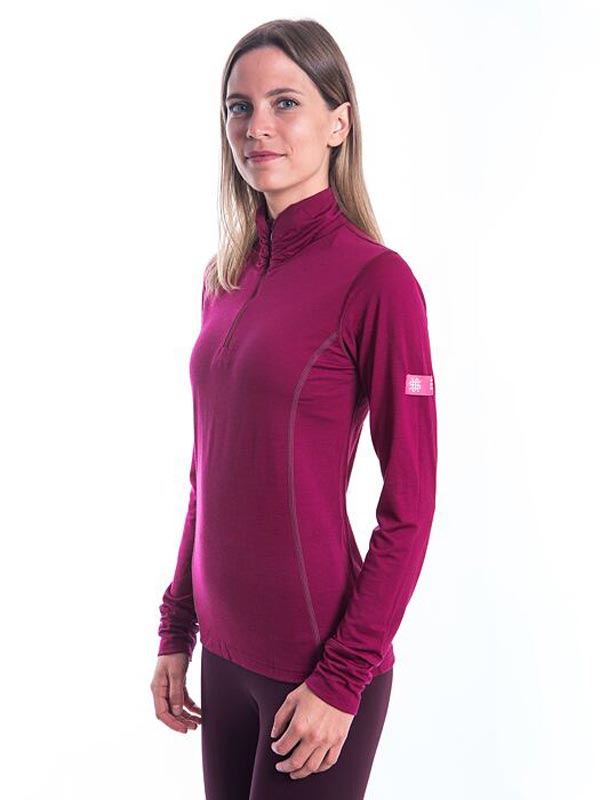MERINO ACTIVE TEE LS COLLAR HALFZIP WOM LILLA