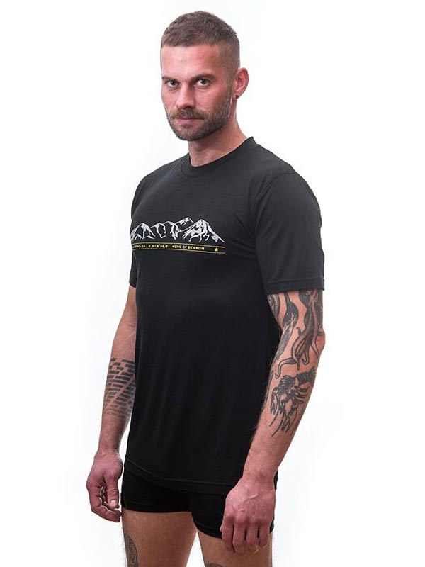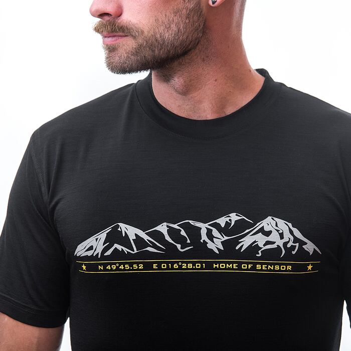 MERINO ACTIVE PT TEE SS MEN BLACK MOUNTAINS