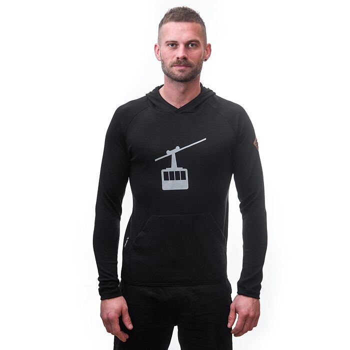 MERINO UPPER FLEECE HOODED MEN BLK Gondola